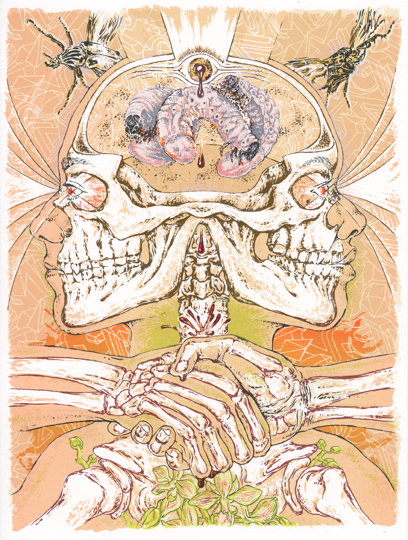 Chris Richford is a multidisciplinary artist based in London. Teaching Silkscreen and Lino-cut techniques & creating alternative anti-fashion and hand printed art-patches as Mantid Snip